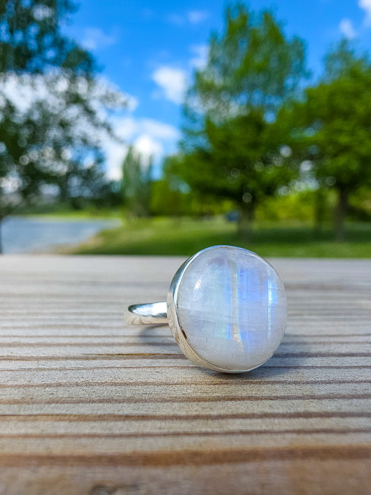 ANILLO DE PIEDRA LUNA CALIDAD EXTRA EN PLATA | AJUSTABLE