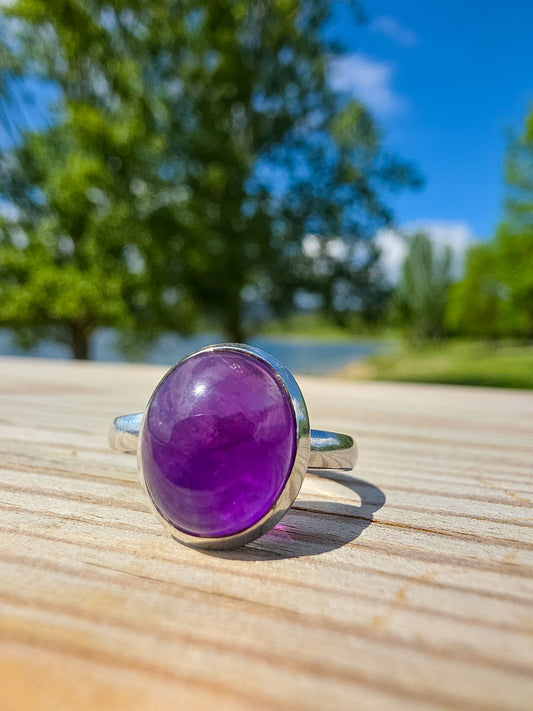 ANILLO DE AMATISTA EN PLATA | AJUSTABLE