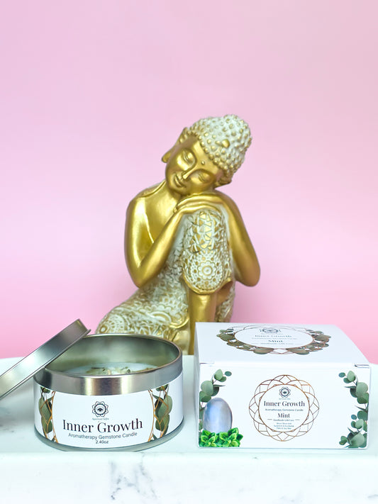 VELA "CRECIMIENTO INTERIOR" PIEDRA LUNA + MENTA | GREEN TEA
